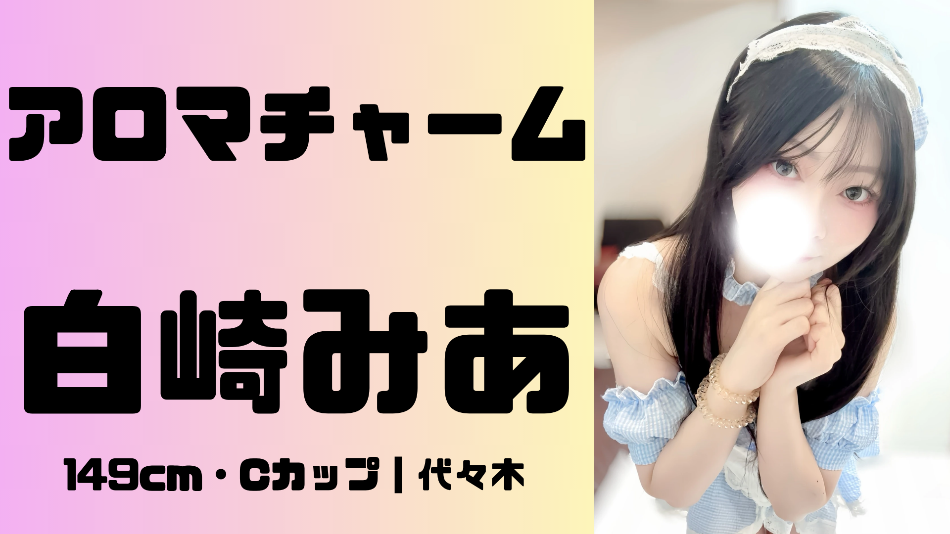 今回はアロマチャームの西新宿ルームにて、スリム美女「白崎みあ」さんを指名してきました。